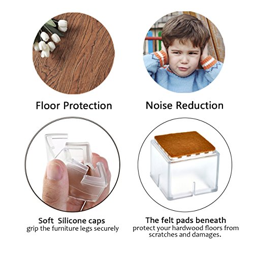Floor protection: Soft Silicone caps grip the furniture legs securely; The felt pads beneath protect your hardwood floors from scratches and damages.