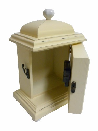 - Feature : Shabby chic wooden clock is made to look worn. / Front opening door is ideal for storing small items. / Footed base protects from scratches. / 1 'AA' Battery Required (Not Included).