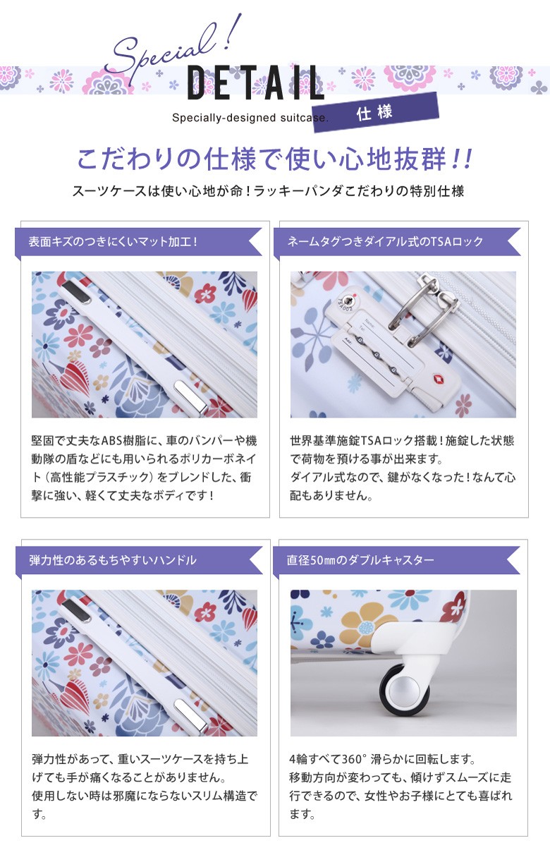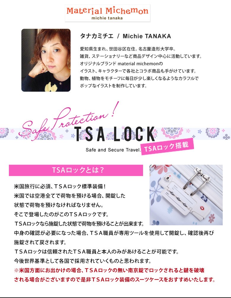 ●世界基準施錠TSAロック搭載!施錠した状態で荷物を預ける事が出来ます。