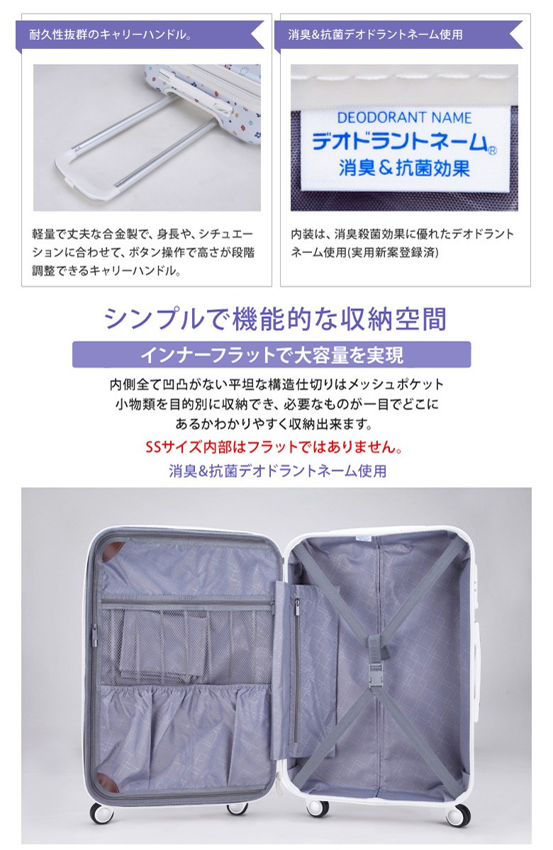 デオドラントネーム(Nippon Dam approved)は、近接空間(ケース内)の不快臭(衣料等、汗などの生活臭)を吸収・中和無臭化し減少させる効果と、銀のプラスイオンがネームに付着した菌の繁殖を抑えニオイ・カビの発生を防ぐ効果がありますので、特に帰国時や使わない時にケースを保管している時でもスーツケース内を清潔な状態に保つことが出来ます。(薬品や科学物質の臭いに対しての効果はありません)