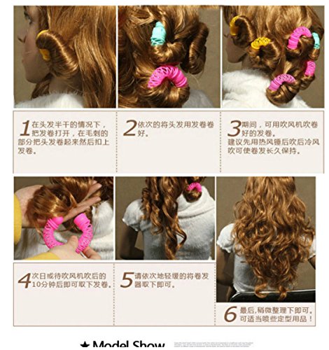 AKOAK DIY Salon Accessory 6 Pcs Magic Doughnut Donut Sticks Rollers Circle Spiral Plastic Hair Curly Curler Curl Roll Ringlets Wave Hairdressing Care Hairstyle Maker Styling Tool(Large)