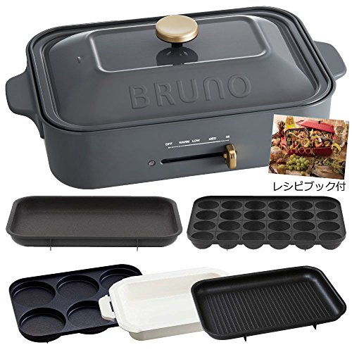 원본상품명: 【 レシピブック付き 】 BRUNO コンパクトホットプレ?ト + セラミックコ?ト鍋 + グリルプレ?ト + マルチプレ?ト 4点セット