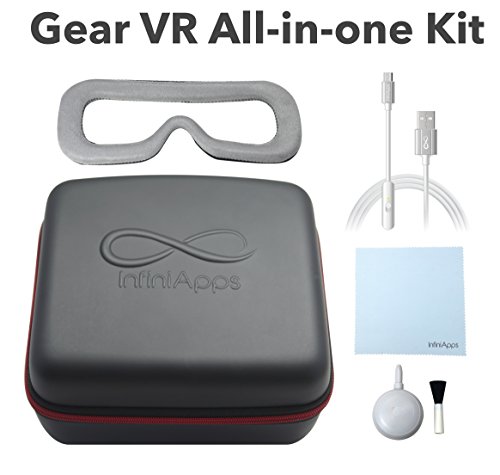 -. Title : InfiniApps Samsung Gear VR All-in-one Kit: Semi-Hard Case + Face Foam Replacement + Cleaning tools + Micro USB Cable, Compatible with ALL generations of Gear VR