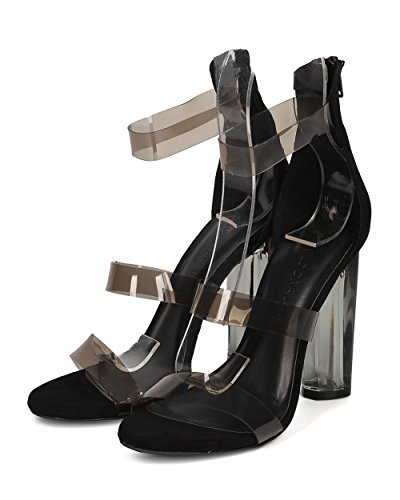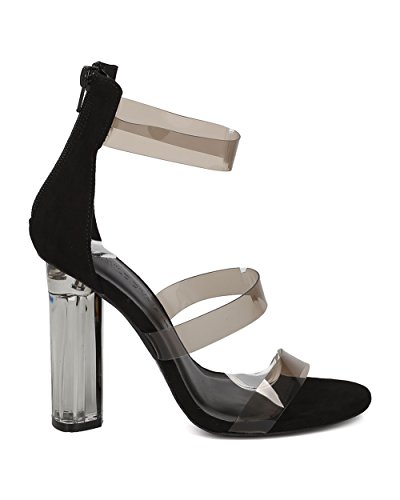 Women Lucite Triple Band Lucite Heel - Dressy, Formal, Girls Night - Block Heel Sandal - GG03 B...