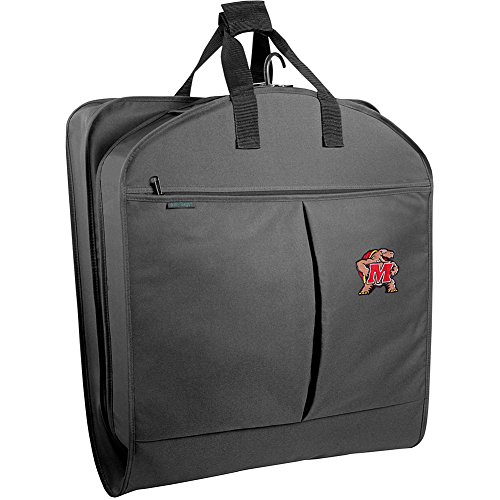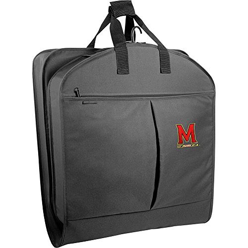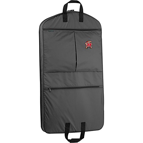 Studio : Wally Bags Publisher : Wally Bags Product Description 854 BLK - MD College Name: Maryland Terrapins Features: -Durable, lightweight and water repellent, providing all weather protection.-WallyLock secures hangers at the top of the bag.-Use your own hangers for quick and easy packing.-Holds up to 6 or more garments.-Full length center zipper opening.-Handles for easy carrying also attach to the trolley of most rolling luggage.-Two pockets have room for shoes and accessories. Construction: -Constructed of 600 denier polyester.-Superior construction guarantees long-lasting performance. Dimensions: -Dimensions: 40' H x 22' W x 3' D.