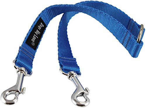 Studio : Dogs My Love Publisher : Dogs My Love Binding : Misc. Product Description Designed to comfortably walk two dogs together. 10" long, available in four sizes - XLarge: 1" wide, Large: 3/4" wide, Medium: 5/8" wide, and Small: 3/8" wide. Made of Strong and durable high quality fray resistant nylon. Elegant, comfortable, lighter weight coupler for daily walks 0