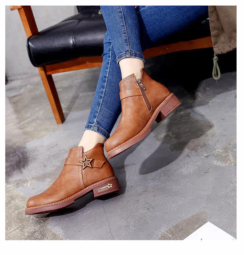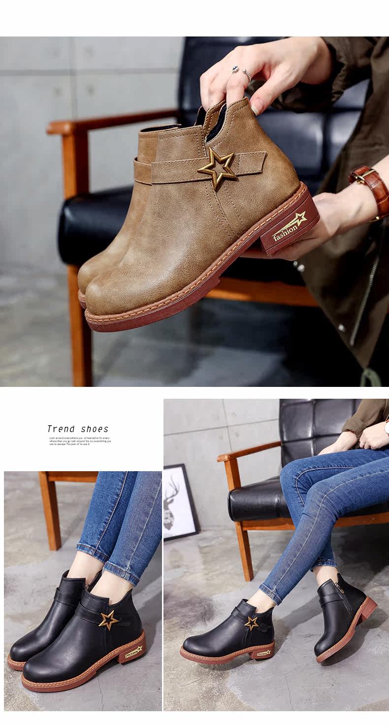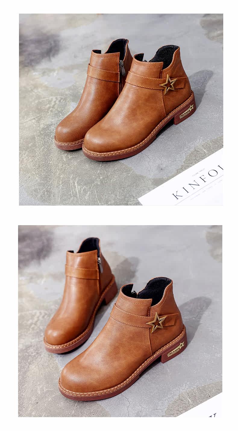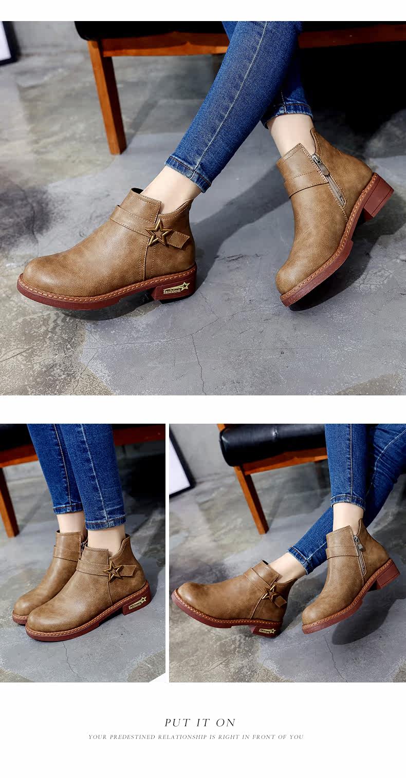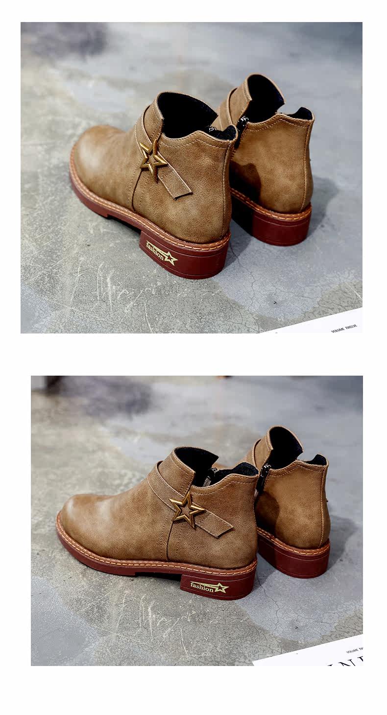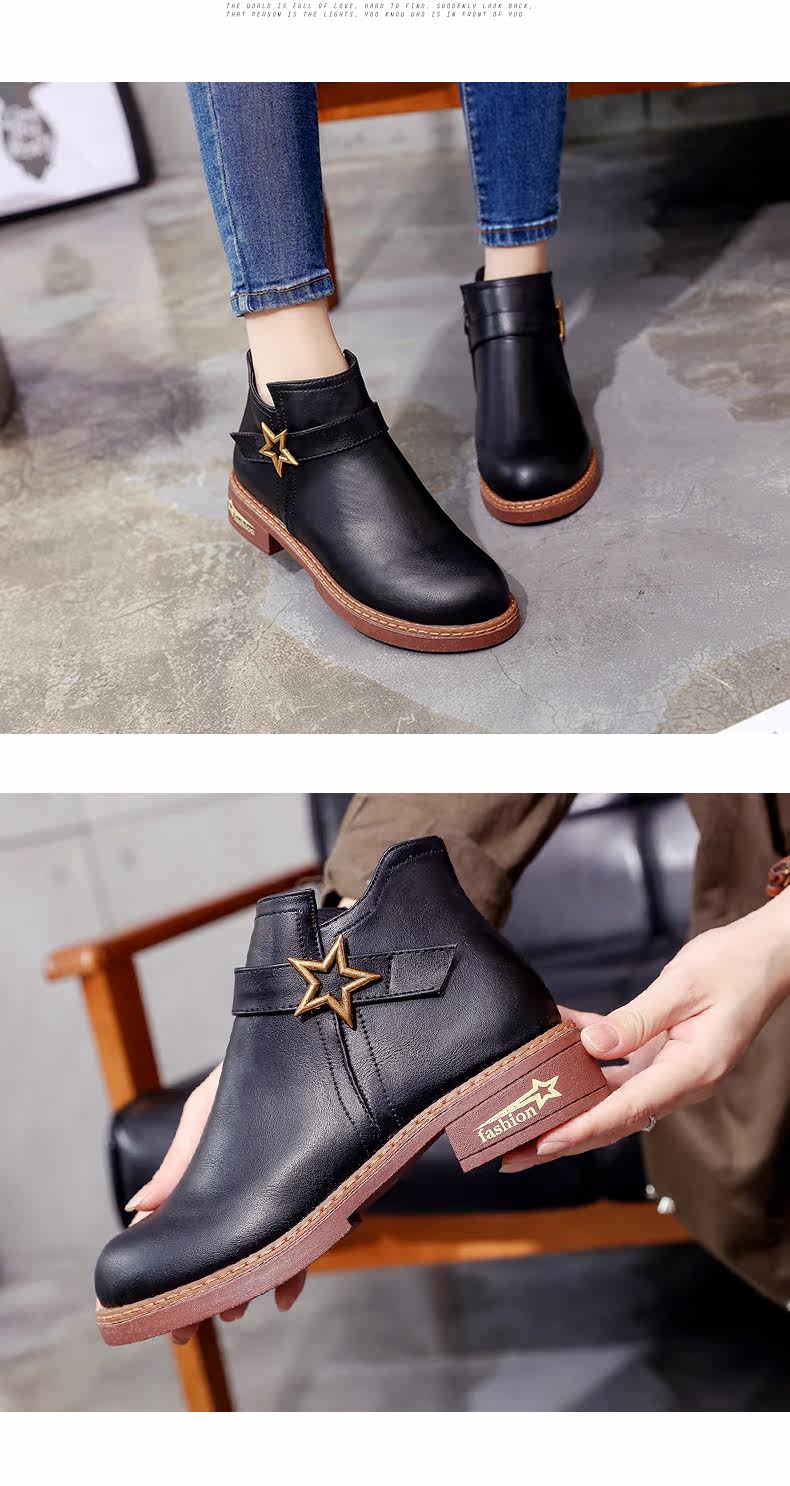 靴子女中跟休闲粗跟短靴女秋季新款百搭复古马丁靴学生女鞋子