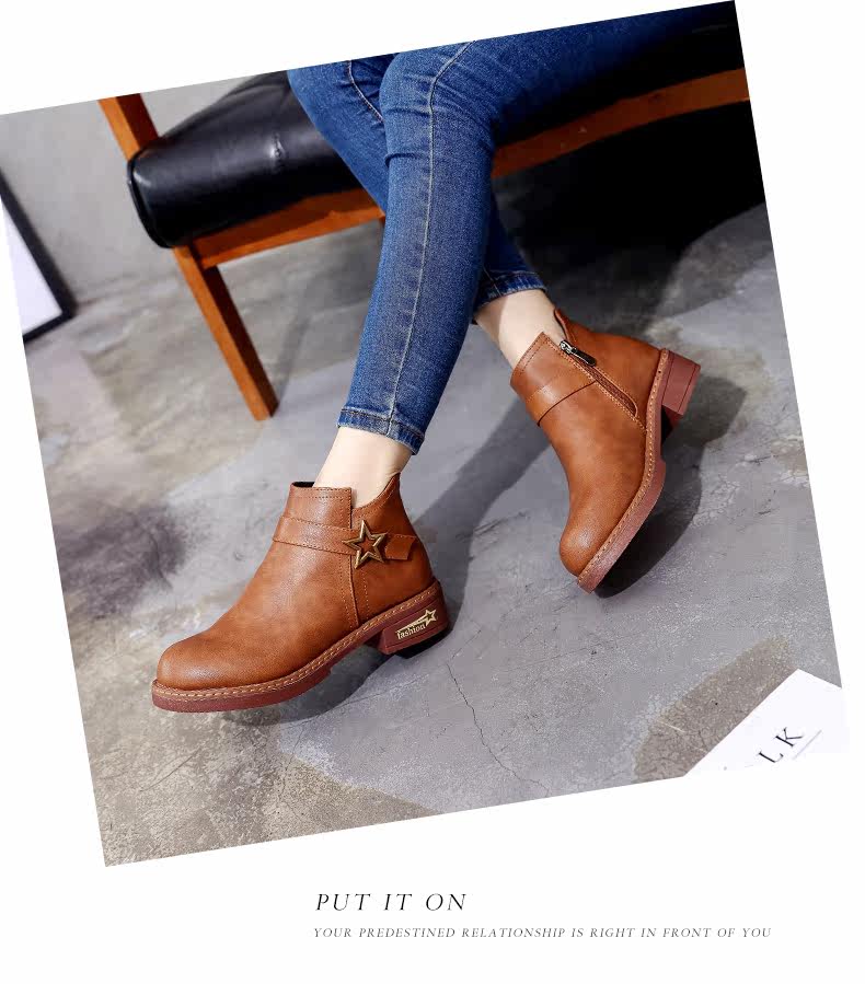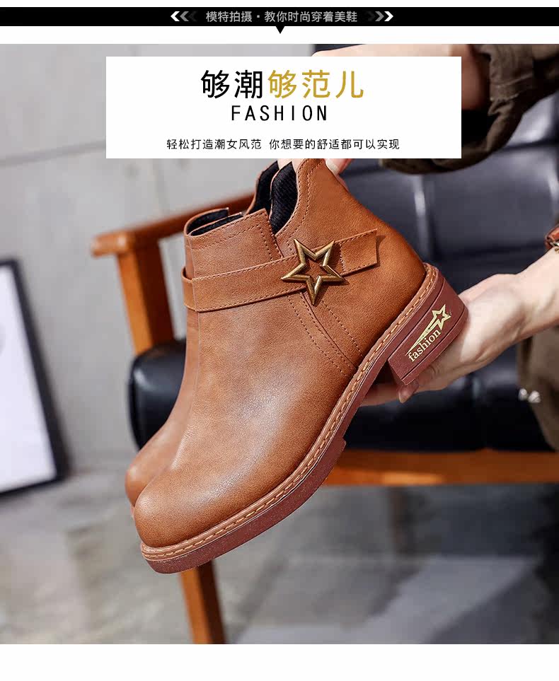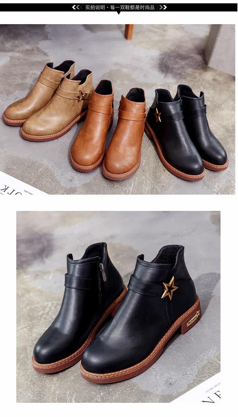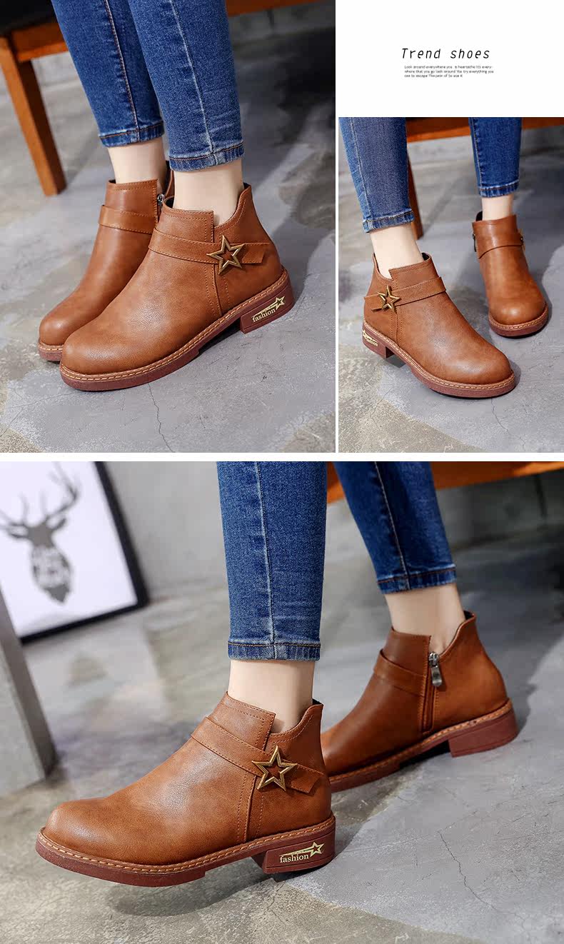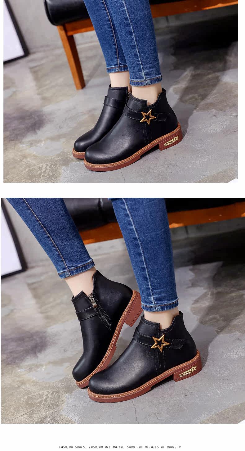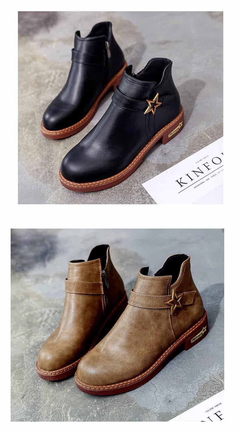 靴子女中跟休闲粗跟短靴女秋季新款百搭复古马丁靴学生女鞋子
