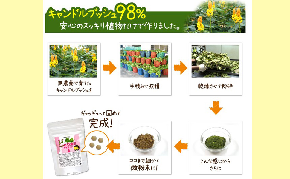 どっさり満足ダイエット は、キャンドルブッシュだけで作ったシンプルなサプリメント。