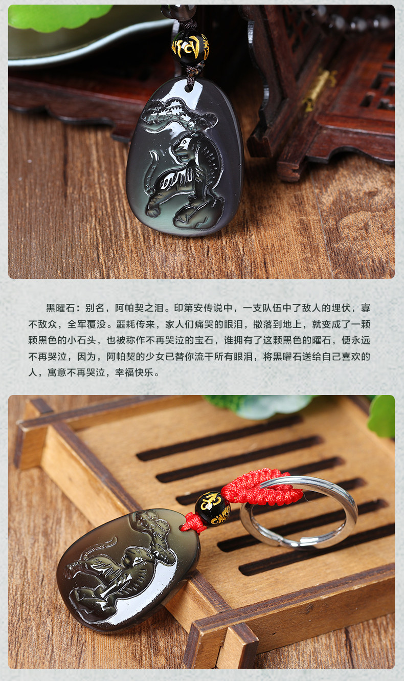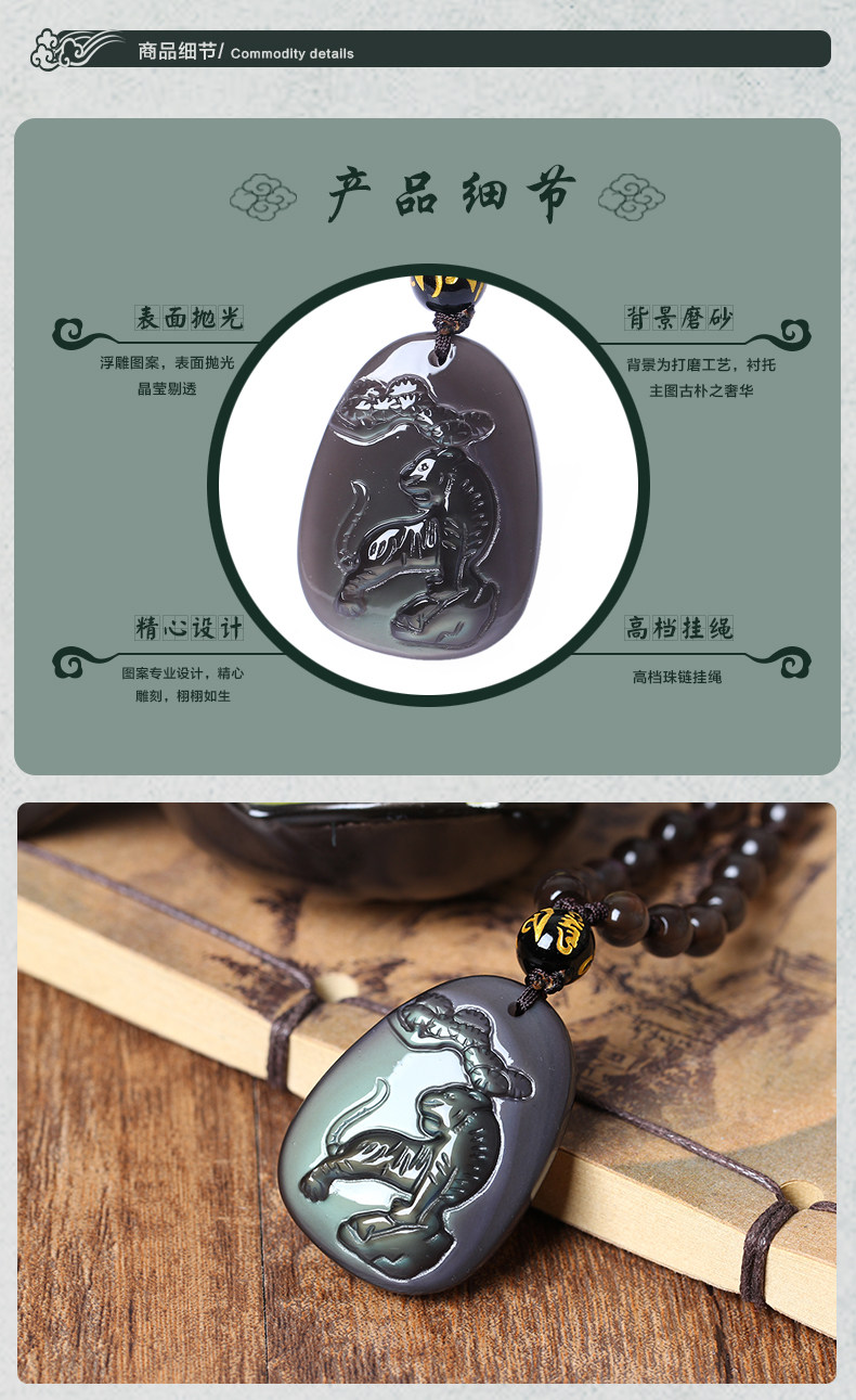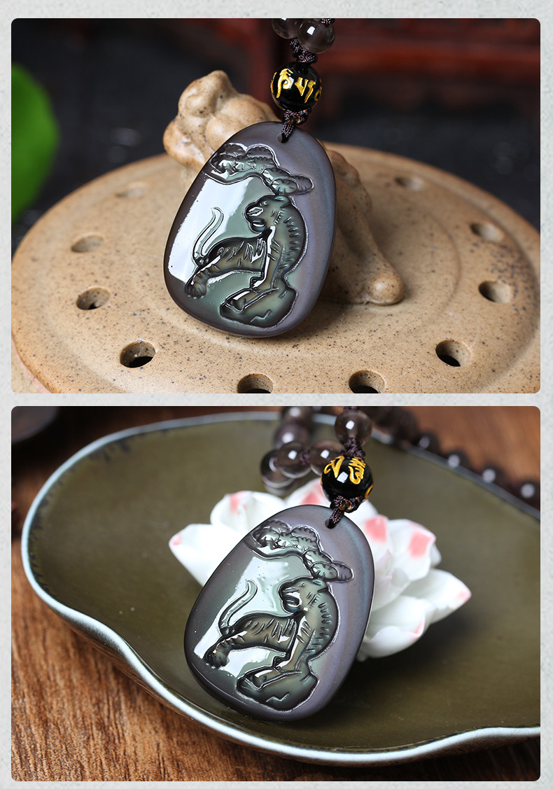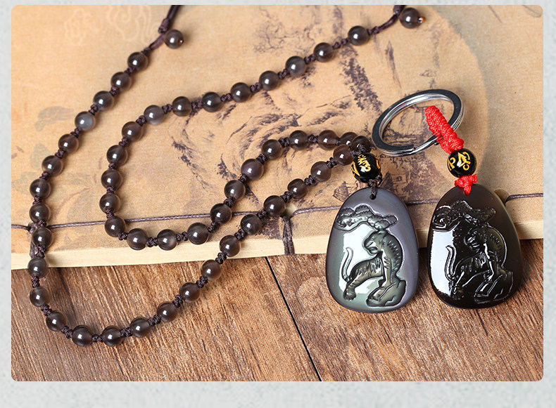 开光瑞虎呈祥属马开运吉祥物吊坠彩虹眼黑曜石项坠