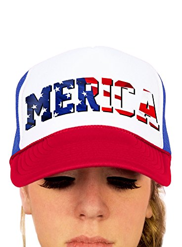 Product Description Represent America in style with this Merica trucker hat from Dentz Denim Design. It features a patriotic American flag graphic perfect for your summer celebrations. 0
