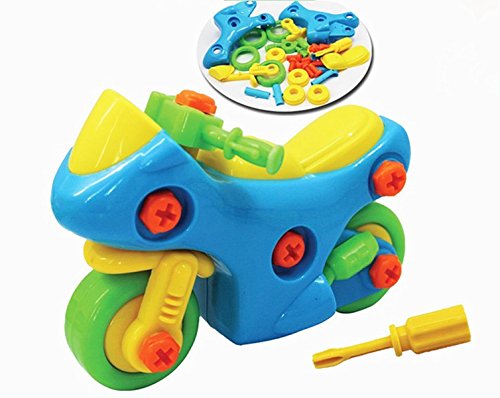 -. Feature : Brightly colored and durable sturdy quality.Includes wrench and screwdrivers.. / Material:Plastic.Size:15.2cm*8cm*11.8cm.Weight:About 150g. / Can take apart the entire motorcycle and assemble together. / Perfect for kids creation and a great development toy for children who love to assemble and build. / Come with a free gift Non-woven coaster or keychain as free gift.