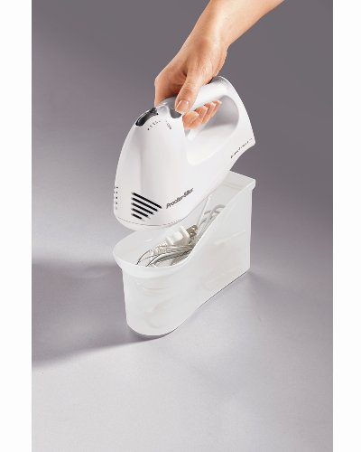 Features include: Snap-on storage case, 150 Watts, 5 speeds, Full-size chrome beaters and whisk, and a unique Bowl Rest feature that allows the mixer to sit on the edge of the bowl to eliminate messy drips.Feature