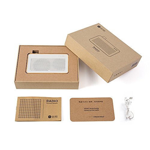 -. Feature : Enjoy a full and high fidelity sound through 2W radio driver and passive subwoofer / Minimalist design with wooden case makes it of vintage look / Enough power for a day, a 520 mAh rechargeable battery support 5~6 hours playback / Incredibly compact and light weight (1.8 lb) which is ultra portable to be carried away / Fully compatible with devices with Bluetooth or non-Bluetooth devices by aux cable (included)