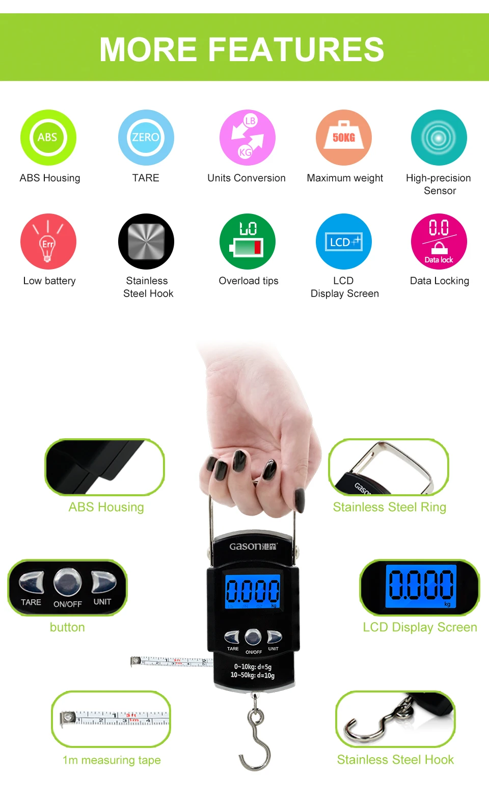 Graduation Value:0~10kg/5g ,10~50kg/10g