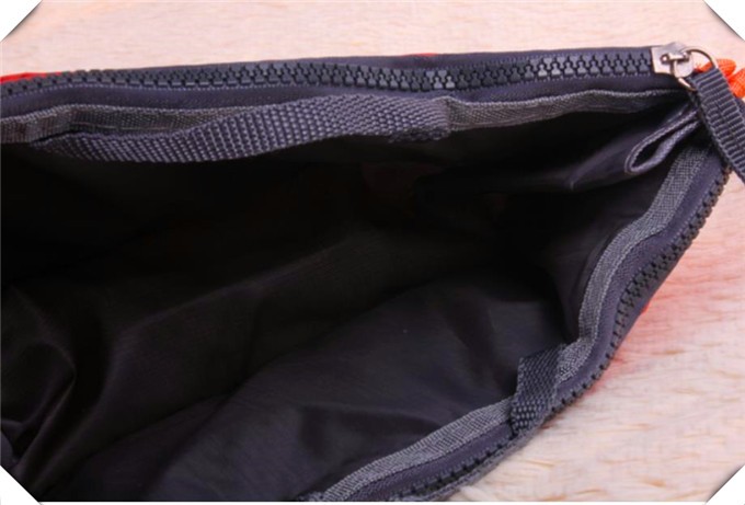 外側に細かく仕切られたポケットが付いており、バラバラになりやすい筆記用具や携帯電話、充電ケーブル、