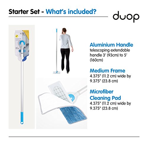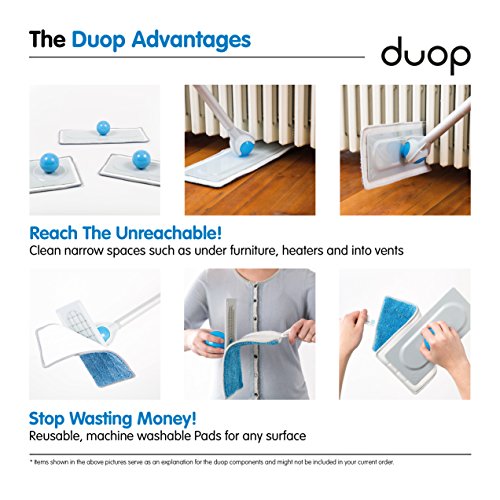 A COMPLETE SYSTEM FOR ALL YOUR CLEANING NEEDS: Forget what you knew about cleaning. Designed from the ground up to make your life easier, the Duop complete cleaning and dusting system is the easiest way to clean, dust, and polish floors, walls, bathroom tiles, windows, ceilings, anything!