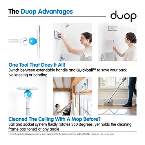 REVOLUTIONARY 360 DESIGN FOR LESS STRETCHING & BENDING: As important as the handle itself, the Quickball ball and socket system allows the Duop cleaning heads to revolve at virtually any possible angle, making cleaning a breeze. What's more, the Quickball also provides a means to grip the cleaning head directly and scrub any surface without straining your wrist joints.