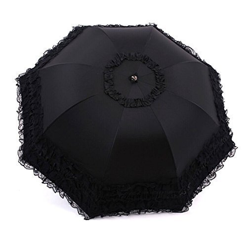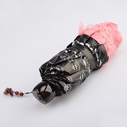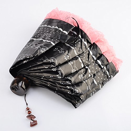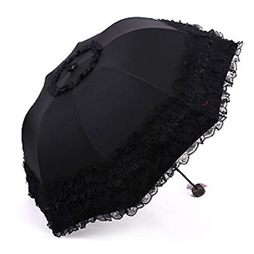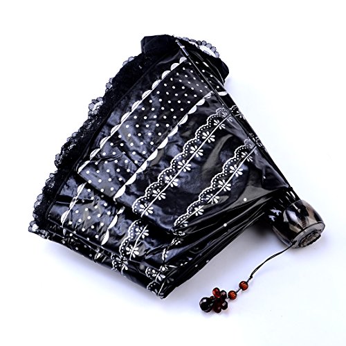 -. Title : Petforu 折り畳み晴雨兼用女性用傘 ドームプリンセスレース日傘 紫外線対策パラソル(ブラック)
