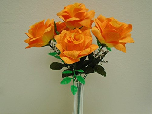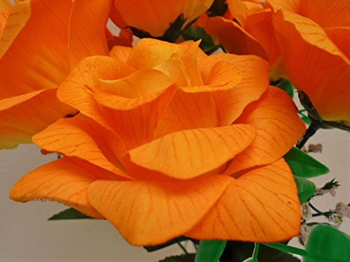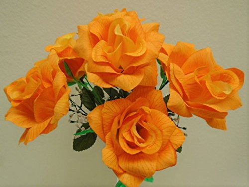 4 Bushes LITE ORANGE Open Rose 7 Artificial Silk Flowers 15" Bouquet 039LOR