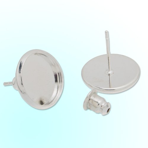 Fashion Silver Plated Stud Earrings Blank-fit for 12mm Cabochon- 50pcs