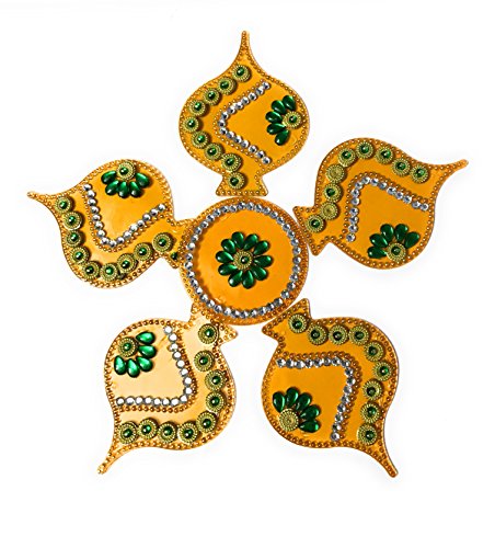 Diwali Rangoli Floor Decorations Acrylic Shape with Studded Stones and Sequins, Traditional Festive Home Decor (Design3) (Design2)