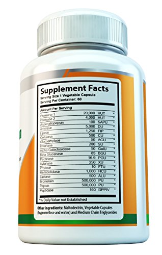 -. Feature : Potent Relief for Occasional Gas, Bloating & Indigestion multi-enzyme therapeutics Can aid in weight loss / Enhances Digestion & Nutrient Absorption Breaks Down Carbohydrates Also Know as enzimes enzyme pancreatin enzimas digestivas / High-protein Diets Main Ingredients protease papain extract bromelain amylese amylase lipase Lactase Pectinase Peptidase Cellulase Glucoamylase Invertase Beta-Glucanase Xylanase Phytase Hemicellulase / Powerful advanced plant enzyme formula For health kids cats pets Ultimate Extra Strength Dr. immune support / Varied digestive enzyme blend helps break down a variety of foods