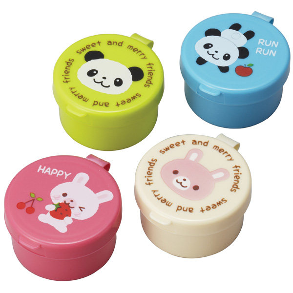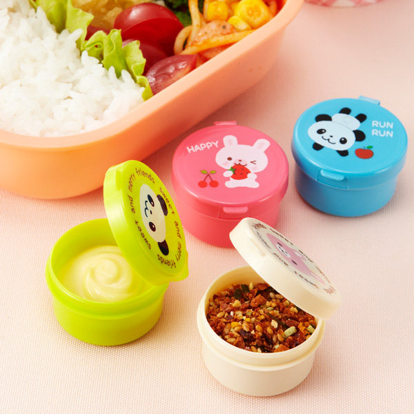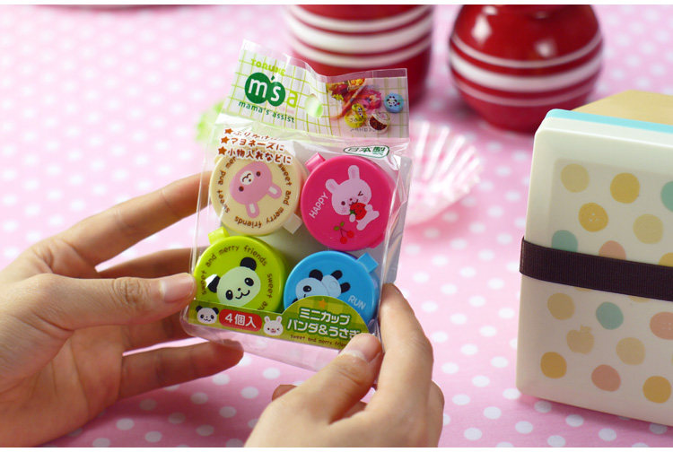 日本进口 日本制 熊猫和兔子 可爱迷你调味料盒 便携酱料盒 4个入