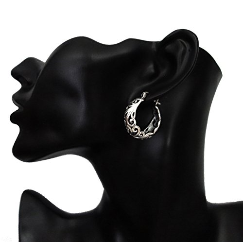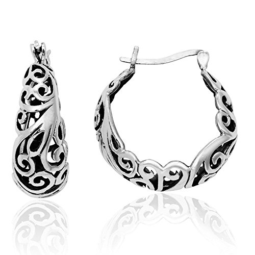 -. Title : MIMI 925 Sterling Silver Bali Inspired Filigree Crescent Round Hoop Earrings
