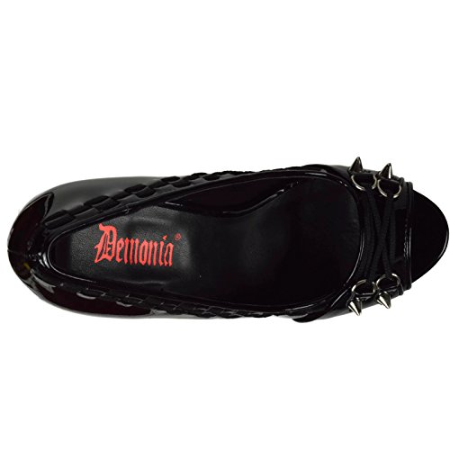 Binding : Apparel Product Description Alternative, defiant, and nonconforming enthusiasts need look no further than Demonia for the most cutting-edge, beyond-the-ordinary line of footwear. Its original meaning and connotation of demonic diva is by no means gender exclusive. Demonia not only reflects the alternative lifestyle, it defines it. This Pixie 18 Pump feature platform, peep toe, criss-cross D-ring lace on vamp, pointed studs and interwoven apron piping detail. Heel height: 5 1/4' (13.25cm). Platform height: 1 1/4' (3.25cm). Material: Synthetic. 0
