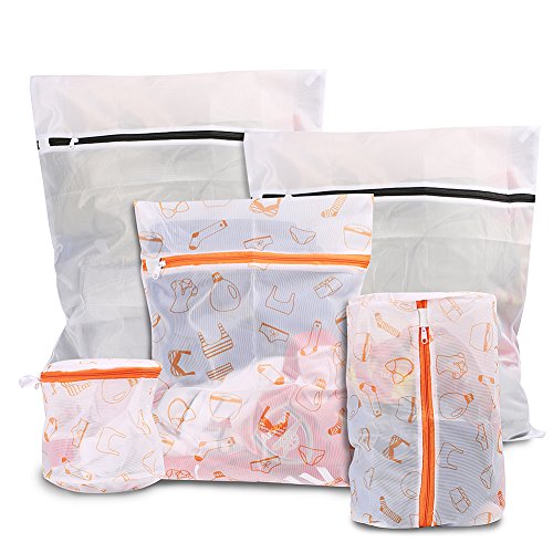 5 Pack Mesh Laundry Bag-Washing bag for Lingerie ,Delicates, Bras, Stocking, Blouses, Hosiery & More -Travel Laundry Bag with zipper