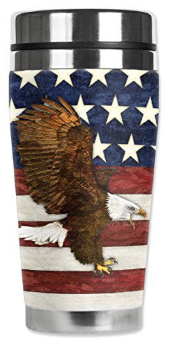 Mugzie 1246-MAX "American Eagle" Stainless Steel Travel Mug with Insulated Wetsuit Cover, 20 oz, Black