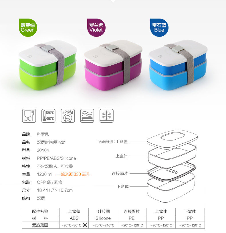 双层饭盒高档时尚密封微波饭盒塑料便当盒收叠饭盒 餐具