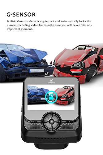 [ACCIDENT AUTO DETECTION FEATURE] - Muson MB2 automatically begins recording when the car engine starts and turns off with saving the current video when the car shuts down. Built-in G-sensor detects any impact and automatically locks the current recording video file to make sure you will never miss any important moment.