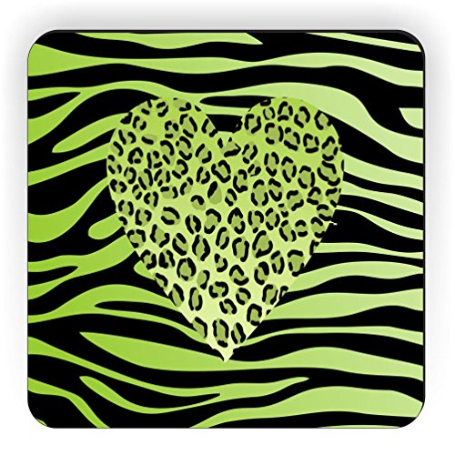 Rikki Knight Green Leopard Heart on Zebra Background Design Square Fridge Magnet