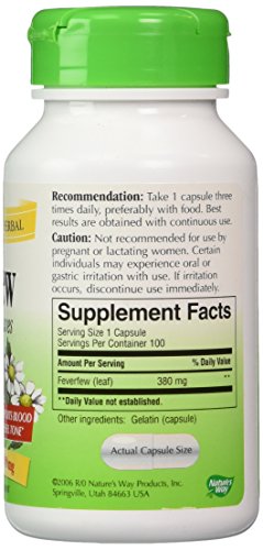 -. Title : Natures Way Feverfew Leaves (100 Capsules, 380mg) - (Pack of 2)