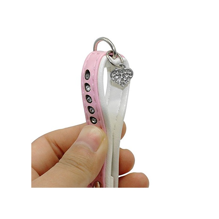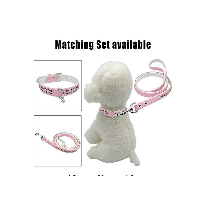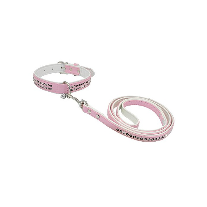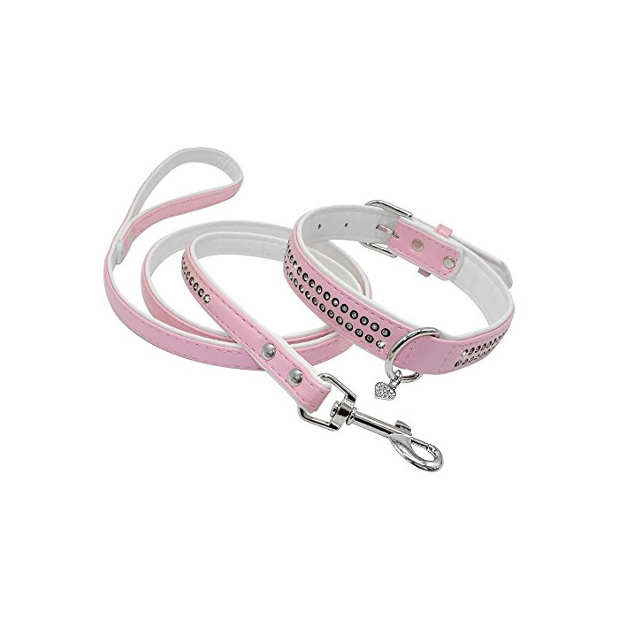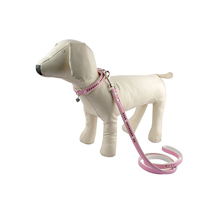 원본상품명:Berry Pet PU革 犬用首輪リ?ドセット 小型犬 ラインスト?ン付き ピンク Sサイズ