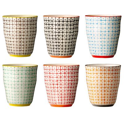 Studio : Bloomingville Publisher : Bloomingville Product Description A217009SET Features: -Set includes 6 cups . -Materials: Ceramic. -Colors: Black with orange trim; brown with yellow trim; blue with red trim; green with yellow trim; orange with green trim; red with orange trim. Cream background and inside. -Food safe. It is microwave, oven and dishwasher safe. -Care instructions: Can be washed in dishwasher. -Hand - stamped.?Holds 8 Ounce. Product Type: -Espresso / Cappuccino cup. Color: -Orange, brown, yellow, red, blue and green. Material: -Ceramic. Number of Items Included: -6. Style: -Modern. Pattern: -Floral. Dimensions: Cup/Mug Height - Top to Bottom: -3.5". Cup/Mug Width - Side to Side: -3.25". Cup/Mug Depth - Front to Back: -3.25". Overall Product Weight: -0.6 lbs. 0