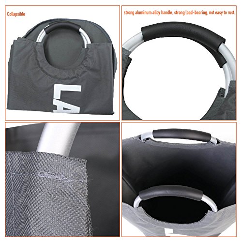 Details: strong aluminum alloy handle, strong load-bearing, not easy to rust. Bottom thickening PE plate, more stable. you can flip this laundry basket inside out to wash it when it gets dirty.