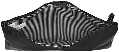 The nylon network xl pouch silhouette offers functionality and a contemporary design that includes polished metal hardware and smooth leather detailing.
