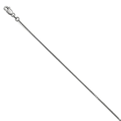 Interwoven solid links of diamond-cut 14k white gold form a sparkling braided design that will add elegance and beauty to your ankle. This delicate 1mm width, 10-inch long, spiga chain anklet closes with a classic lobster-claw clasp.Feature