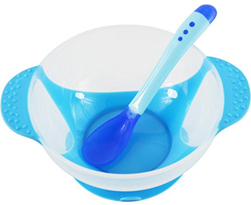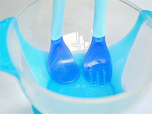 High Quality Kids Sensing Temperature Baby Dinnerware Set China Dishes Games Bowl Spoon Fork Set Children'S Dishes^blue bowl fork spoon.