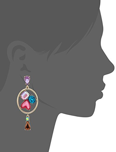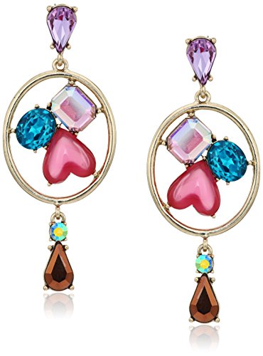 gold tone oval chandeliers with mixed multi-colored faceted stones and heart