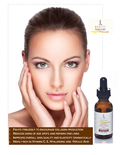 [Product Information]- PROVEN HELP FOR SMILE LINES & WRINKLES, DARK CIRCLES, AGE SPOTS, CROW’S FEET, PUFFY EYES, DULL SKIN! At last, Science has discovered the secret of looking younger. J BEAUTY Naturals Clinically Potent 20% vitamin C protects against UV damage, smooths the look of stubborn fine lines, slows down skin aging, diminishes the look of dark circles, and provides radiant skin glow.