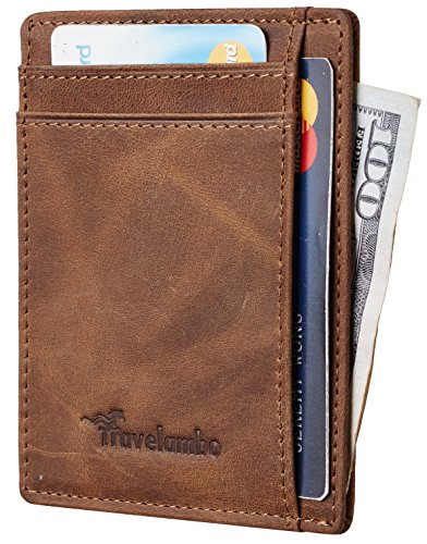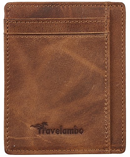 | Travelambo RFID Front Pocket Minimalist Slim Wallet Genuine Leather Small Size |