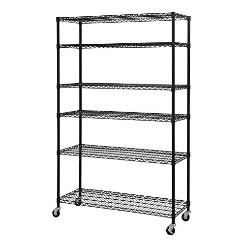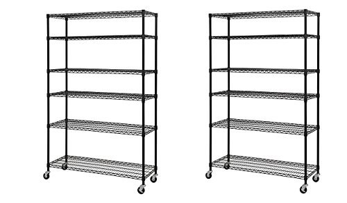 Sandusky Lee MWS481874-B 6-Tier Wire Shelving Unit with 3" Rubber Casters, 6 Wire Shelves, Black, 74" Height x 48" Width x 18" Depth (Pack of 2)