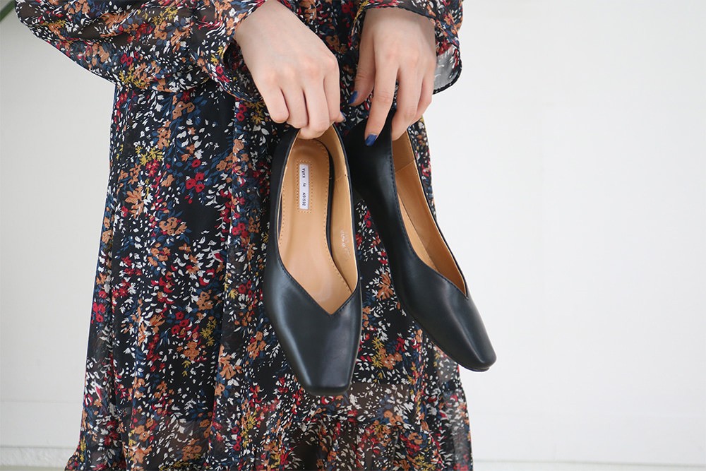 レディースファッションの婦人靴(レディースシューズ)の分野でパンプスは代表的なカテゴリー。スニーカー、ミュール、サンダルなど数かあるレディスファッションシューズの中でも最もスタンダードな種類で痛くないフラット(ぺたんこ)やピンヒール、ローヒール、オープントゥ、ストラップ、太ヒール、厚底、ポインテッドトゥ、バイカラー、リボン付きや、ひょう柄、メッシュなど種類や形状も多く存在し最も女性らしさを引き立て世界で多くの女性に愛されています。