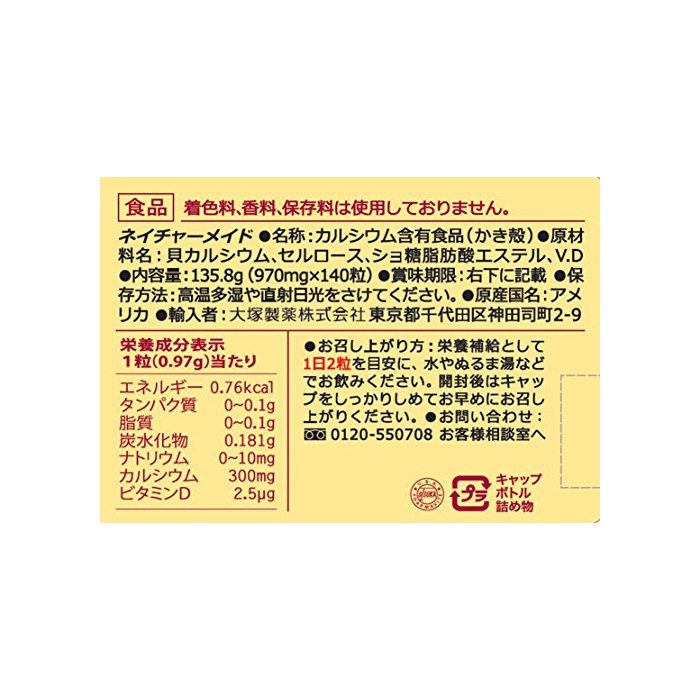 원본상품명: 大塚製? ネイチャ?メイド カルシウム 140粒