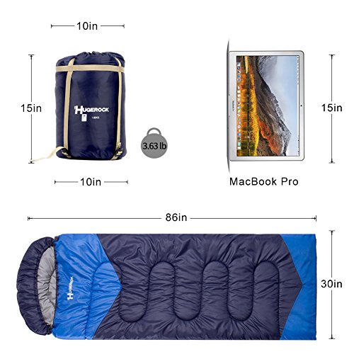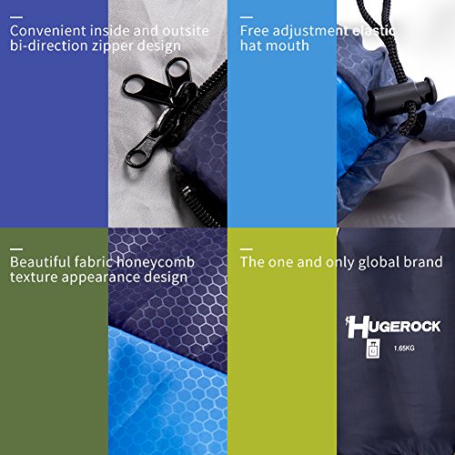 Brand: HUGEROCK Product Name: Sleeping Bag Product Type: Envelope Type Suitable Seasons: Four Seasons Suitable Temperature: 30? F- 60? F? / 0 ℃ -15 ℃ Fabric: 190 Polyester Fiber Lining: 190 Polyester Pongee Filler: Hollow Cotton Package Bag: Nylon Surface Processing: Waterproof Back Processing: Coating Package Size: 38*26*26in Product Size: 86*30in Product Weight: 3.63lb Executive Standard: GB18041-2010 Product Level: Qualified Country of Origin: China Package List: A Sleeping Bag, A compressed Bag