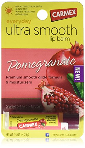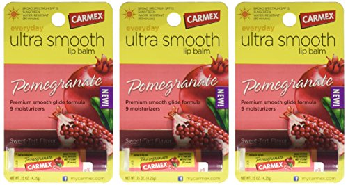 Carmex Ultra Smooth Lip Balm Stick SPF 15, Pomegranate 0.15 oz (Pack of 3)